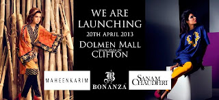 Sanam Chaudhri and Maheen Karim dresses 2013 by Bonanza are going to be launched today. These dresses are mostly western and consist of tops and tights. They are stylish and wearable - Ready to wear and pret is available in this collection.